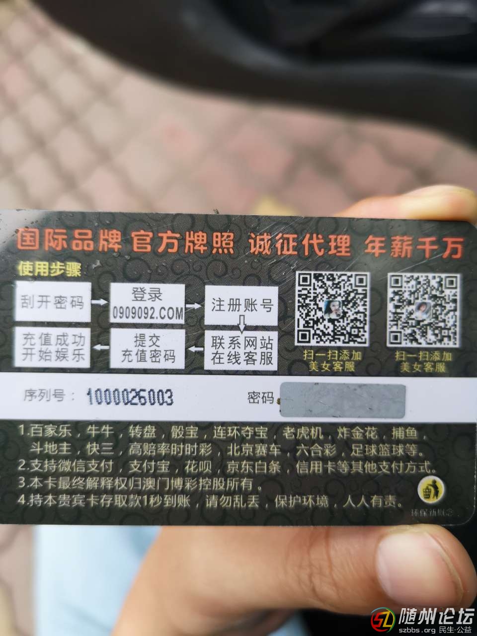 現(xiàn)在有些違法經(jīng)營的宣傳遍布大街小巷,牛皮癬廣告、明信片等廣告深入每個(gè)角落,且都留有聯(lián)系電話,建議執(zhí)法部門“按圖索驥”端掉窩點(diǎn)進(jìn)行嚴(yán)厲打擊。 |