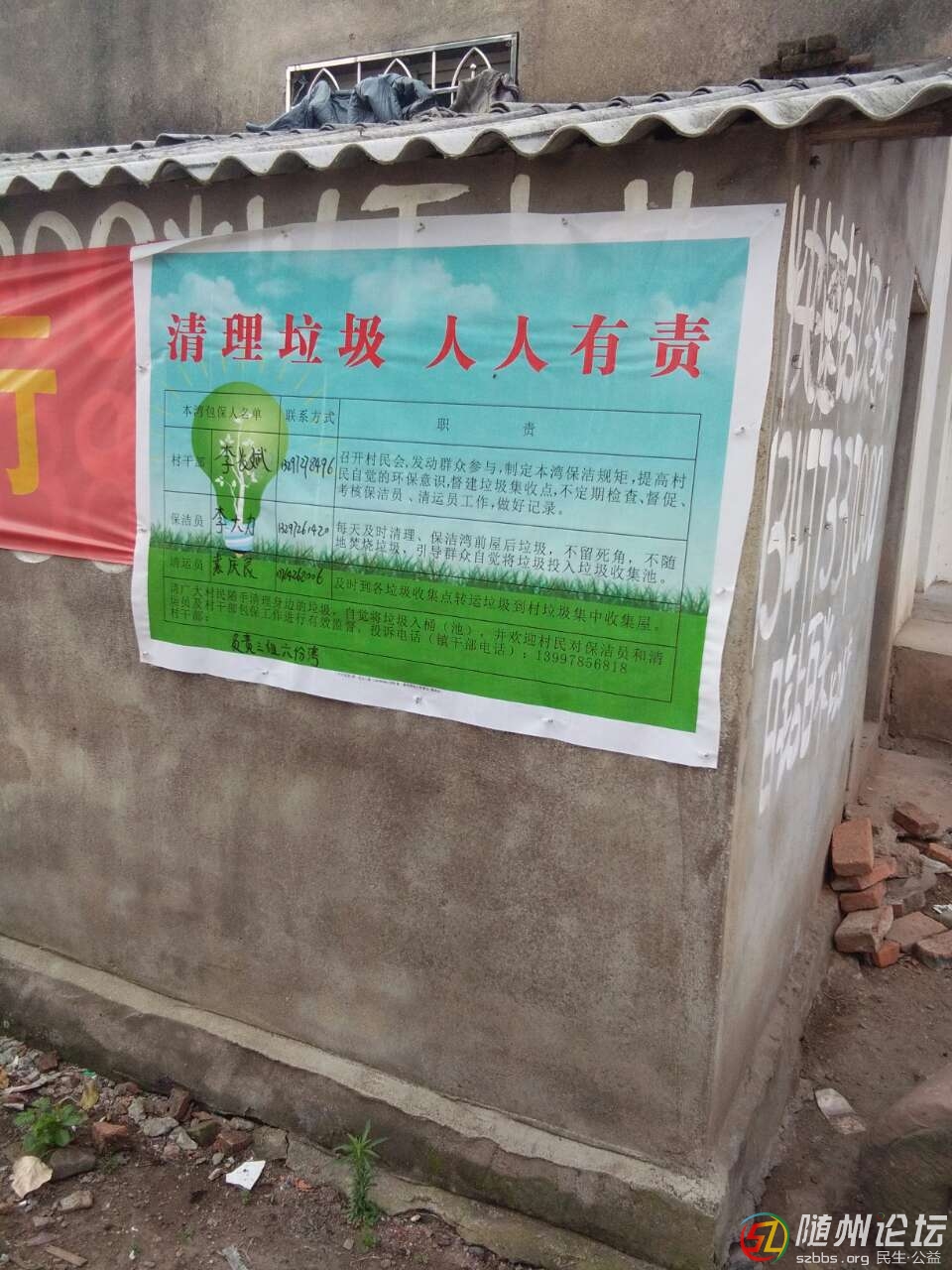 隨州論壇訊:特約記者東方紅報(bào)道,連日來,廣水市長嶺鎮(zhèn)平林市村干部李長斌,李剛等深入該村六份灣現(xiàn)場指揮,安排專人督辦鄉(xiāng)村垃圾處理工作,通過張貼宣傳畫報(bào),添加垃圾桶,請專人清理灣前,房前屋后的垃圾,并對這 ...