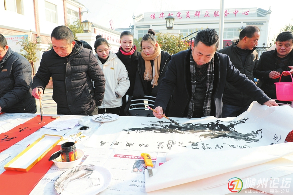 書寫對聯(lián)、揮毫畫馬、文藝表演、展板宣傳……日前,曾都區(qū)在何店鎮(zhèn)桂華村文化廣場舉行2019年送文化下鄉(xiāng)啟動(dòng)儀式?;顒?dòng)現(xiàn)場,一派喜慶、熱鬧的景象。(全媒體記者 唐天才 通訊員 曉枝攝) ...