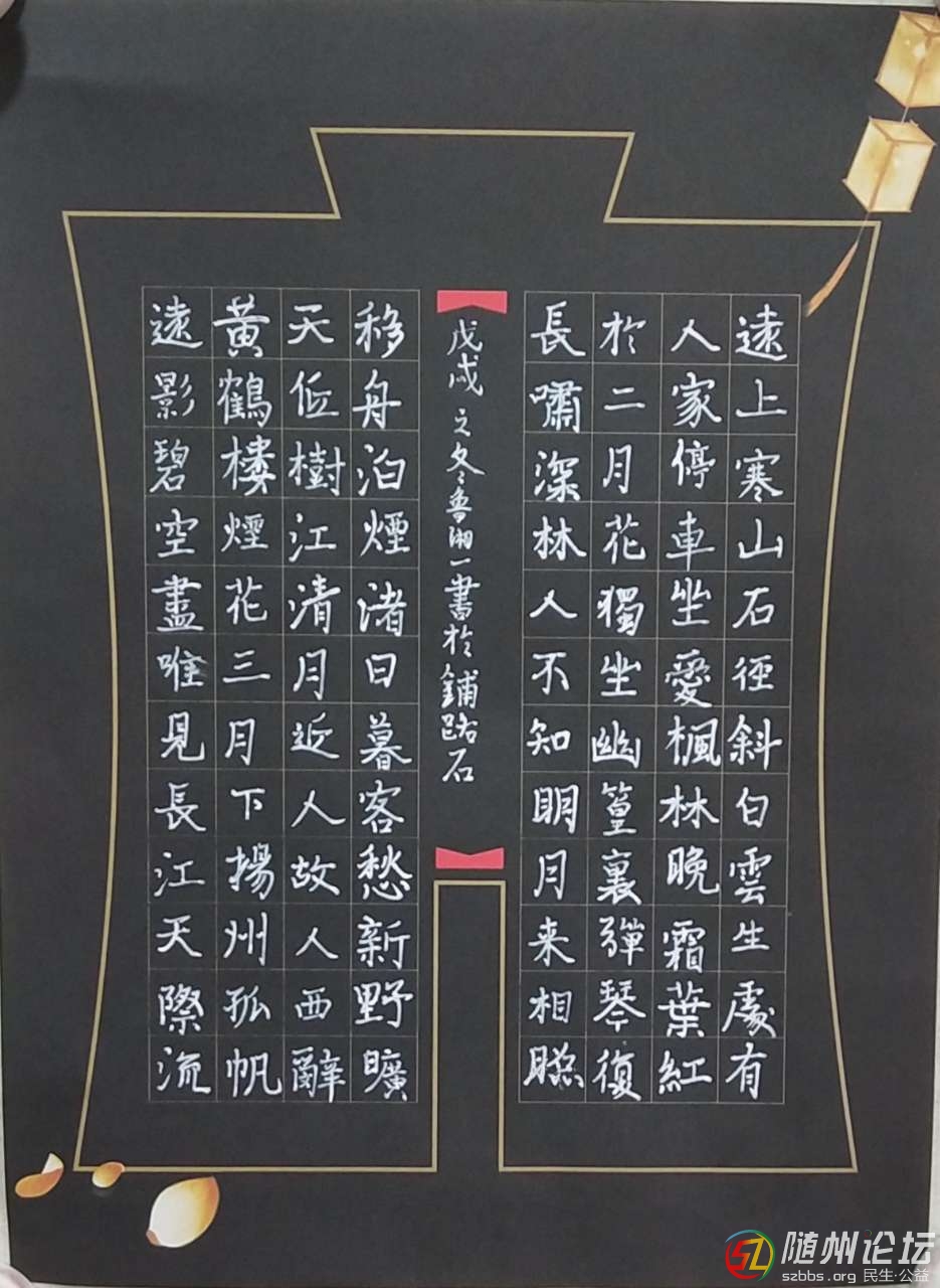 本帖最后由 古道西風(fēng) 于 2019-3-1 17:02 編輯 魯湘一2018年7月開始接觸書法,從楷書開始學(xué)起,現(xiàn)在能寫一手不錯的楷體字。在這個基礎(chǔ)上,為了更貼合日常學(xué)習(xí),魯湘一開始學(xué)習(xí)行楷,這樣就解決了書寫速度問題。下 ...