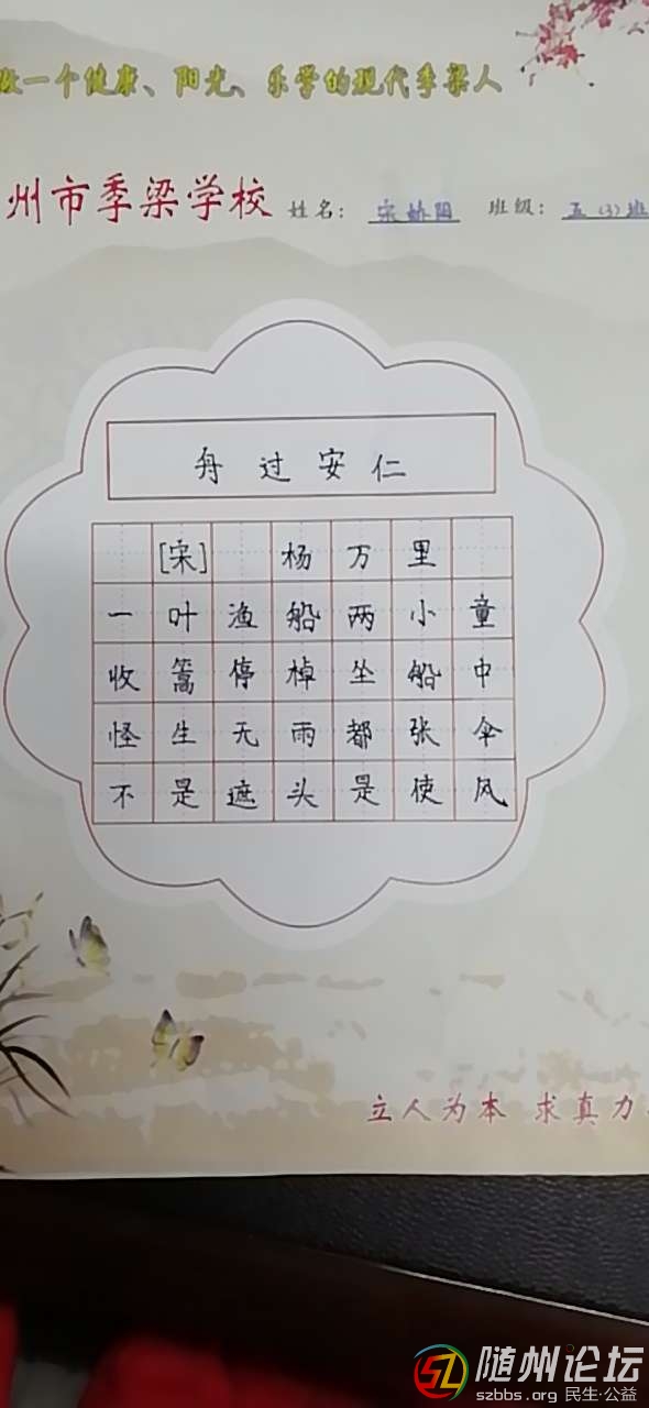 本帖最后由 保質(zhì)期 于 2019-3-12 10:22 編輯 隨州市季梁學(xué)校五(3)班宋嬌陽書法作品
