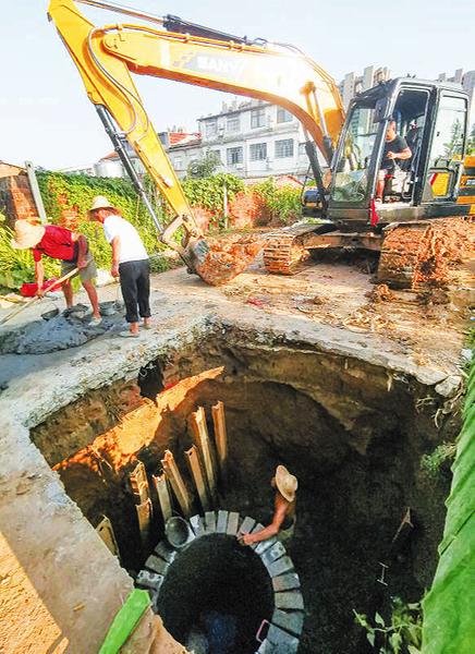 8月10日,工人冒著烈日在曾都區(qū)南郊辦事處柳樹淌社區(qū)柳樹淌河進(jìn)行污水管網(wǎng)施工。該工程10月份完工后可以徹底解決柳樹淌社區(qū)防汛和實現(xiàn)清水、污水分流。(隨州日報全媒記者李文軍攝) ...
