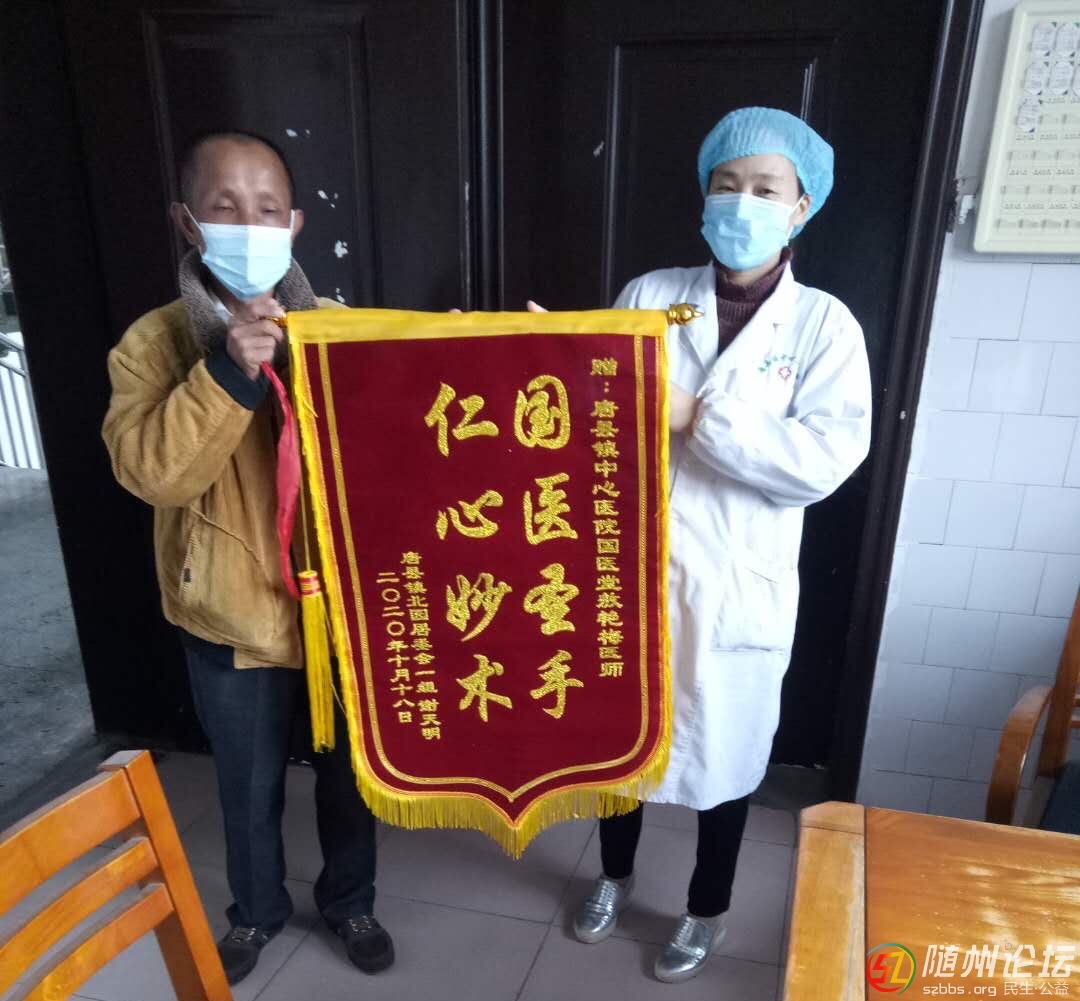 隨州論壇訊通訊員廖祺祺報(bào)道:近日,隨縣唐縣鎮(zhèn)中心衛(wèi)生院國醫(yī)堂上演了溫馨的一幕,患者謝先生家屬手捧一面寫著“ 國醫(yī)圣手,仁心妙術(shù) ”字樣的錦旗,送到了國醫(yī)堂敖艷梅醫(yī)生及全體醫(yī)護(hù)人員手中,以表示 ...