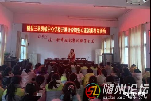 隨州論壇訊 (通訊員胡珊珊)3月18日中午,隨縣三里崗鎮(zhèn)中心學(xué)校在大會議室舉行了以“擁抱青春,健康成長”為主題的青春期健康教育講座。講座由三里崗鎮(zhèn)中心學(xué)校黨支部副書記、副校長汪方方主持,全校 ...