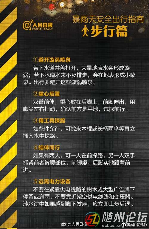 正文摘要:本帖最后由 隨州日報 于 2021-8-12 21:01 編輯 雨天安全事故易發(fā),提前做好防范是關(guān)鍵!雨天行車要注意什么?車輛不慎落水該如何自救?雷電天氣出行該怎樣應(yīng)對?…大家都要保護好自己!愿平安! (圖片來源于人民 ... |