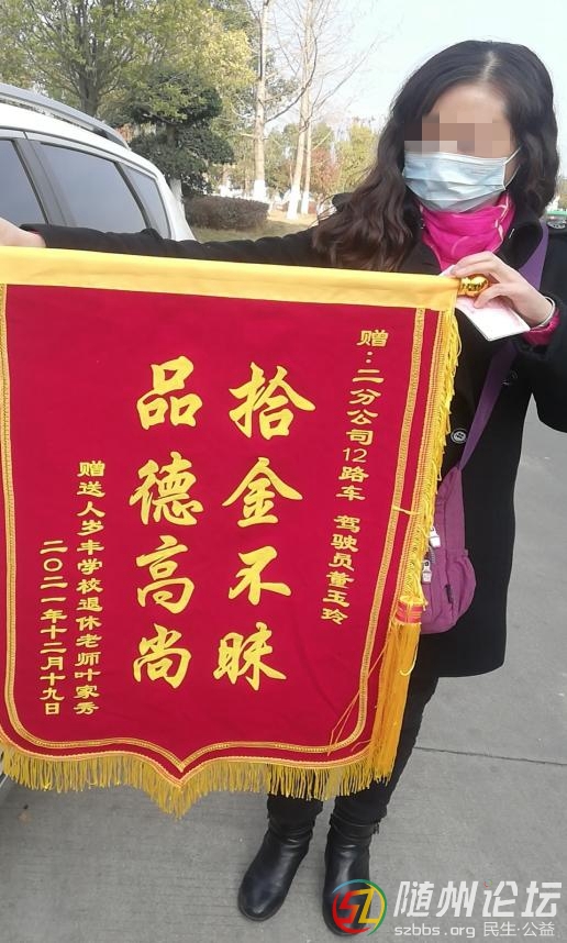 本帖最后由 自由如風 于 2021-12-21 10:45 編輯 隨州論壇訊(通訊員孫增)12月20日,市民葉女士委托其女兒,將一面“拾金不昧,品德高尚”的錦旗送到程力水岸國際12路公交車首末站內(nèi),交到隊長金剛手 ...