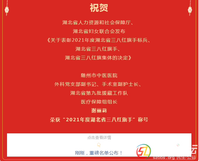 祝賀!隨州市中醫(yī)醫(yī)院謝麗莉榮獲“2021年度湖北省三八紅旗手”稱號