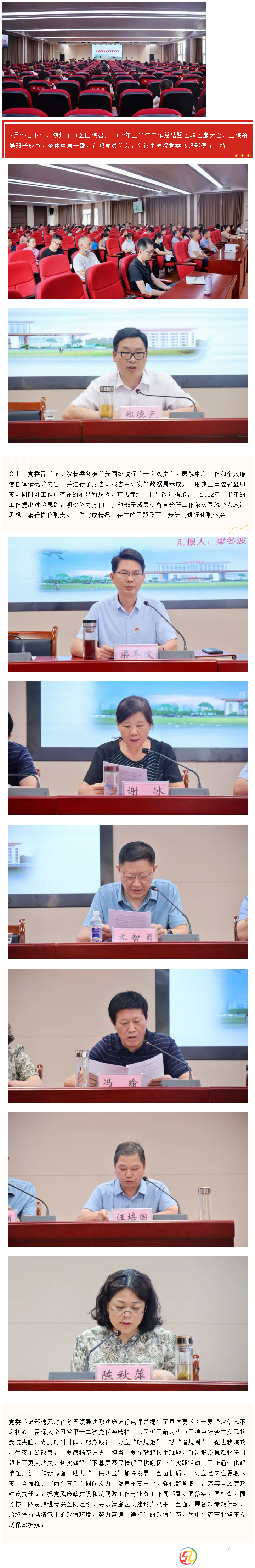 隨州市中醫(yī)醫(yī)院召開2022年上半年工作總結(jié)暨述職述廉大會
