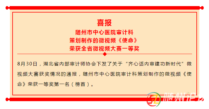 正文摘要:祝賀!隨州市中心醫(yī)院榮獲全省“齊心話內(nèi)審 建功新時(shí)代“微視頻大賽一等獎(jiǎng) 為展現(xiàn)新時(shí)代我省廣大內(nèi)審機(jī)構(gòu)和內(nèi)審人員助力經(jīng)濟(jì)社會(huì)高質(zhì)量發(fā)展的不凡業(yè)績(jī),昂揚(yáng)向上的精神風(fēng)貌,明察秋毫的過(guò)硬本領(lǐng),湖北省內(nèi)審協(xié) ... |
