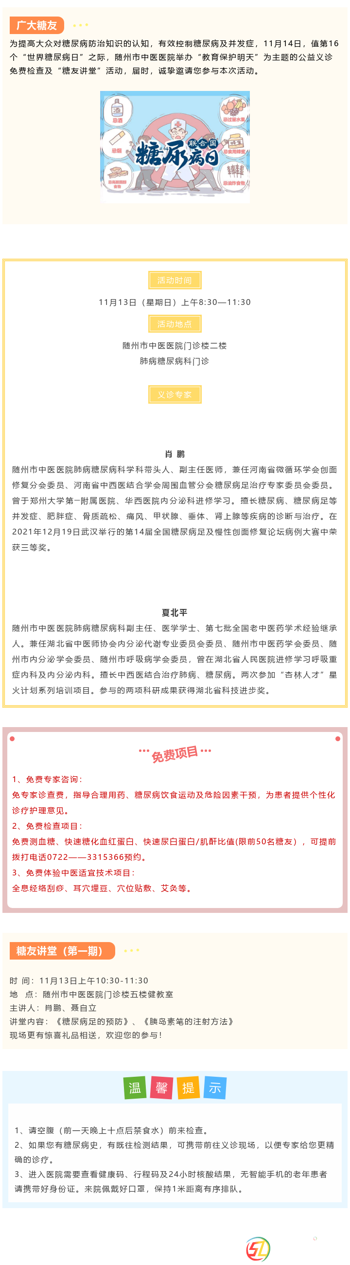 隨州中醫(yī)醫(yī)院 公益義診免費(fèi)檢查,“糖友講堂”開(kāi)講…
