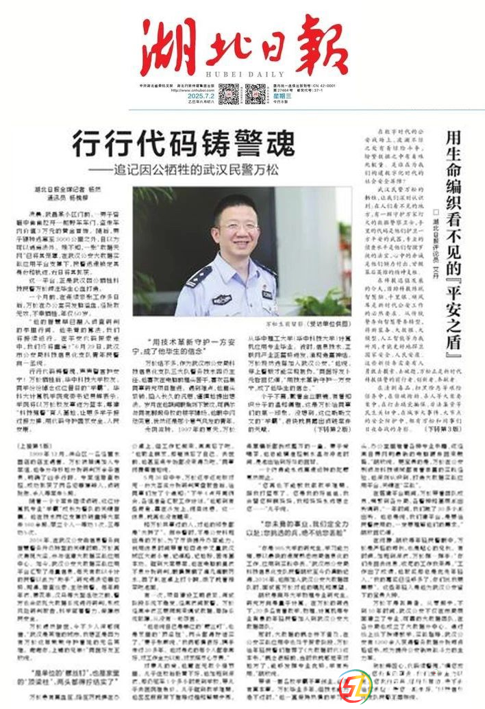 行行代碼鑄警魂——追記因公犧牲的武漢民警萬(wàn)松 ▲萬(wàn)松生前留影 ( p/ h( Z" g; [: ]7 i( g3 n3 a光陰流轉(zhuǎn)。1997年的夏天,萬(wàn)松從華中理工大學(xué)(華中科技大學(xué))計(jì)算機(jī)應(yīng)用專業(yè)畢業(yè)。彼時(shí),信息技術(shù)、互聯(lián)網(wǎng)產(chǎn)業(yè)正蓄 ...